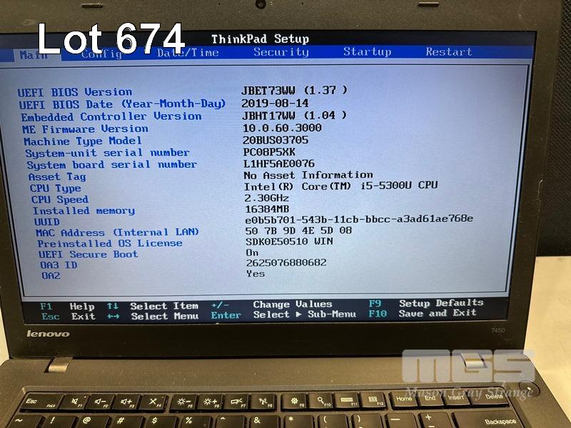 LAPTOP, LENOVO THINKPAD T450, TYPE 20BU, CORE i5 5300U (5TH GEN) @ 2.3GHz, 16GB DDR3 RAM, 500GB SSD, 14" WIDESCREEN (1366x768), INTEL HD VIDEO, Wi-Fi, BLUETOOTH, WINDOWS 10 PRO INSTALLED & POWER SUPPLY (NOTE: "H" KEY LOOSE, MINOR MARKS ON SCREEN) S/N:PC08P5XK