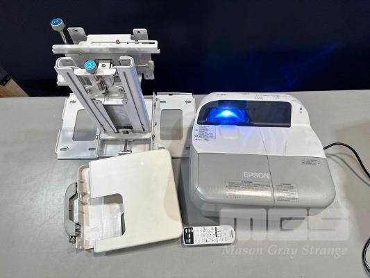 PROJECTOR, EPSON EB-485W ULTRA SHORT-THROW 3LCD, 3,100 LUMENS, HDMI INPUT WITH REMOTE, 327 NORMAL HOURS SHOWING WITH WALL BRACKET S/N:QV4F2Y0023L