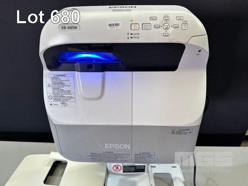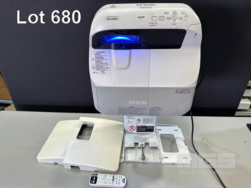 PROJECTOR, EPSON EB-485W ULTRA SHORT-THROW 3LCD, 3,100 LUMENS, HDMI INPUT WITH REMOTE, 914 NORMAL HOURS SHOWING WITH WALL BRACKET S/N:QV4F370018L