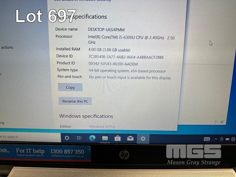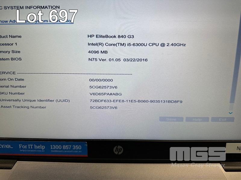 LAPTOP, HP ELITEBOOK 840 G3, CORE i5 6300U (6TH GEN) @ 2.4GHz, 4GB DDR4 RAM, 128GB SSD, 14" WIDESCREEN (1920x1080), INTEL HD VIDEO, Wi-Fi, BLUETOOTH, WINDOWS 10 PRO INSTALLED & POWER SUPPLY (NOTE: MINOR MARKS ON SCREEN) S/N:5CG62573V6