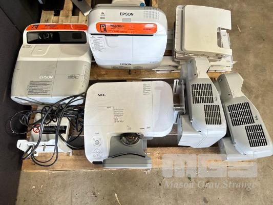 4 x EPSON SHORT-THROW DATA PROJECTORS 1 x NEC SHORT-THROW DATA PROJECTORS (SOME WITH FAULTS, NO REMOTES)