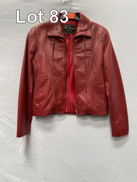 L' AURORE WOMENS LEATHER JACKET, 100% LEATHER, SIZE: 8, RED, ORP: $499