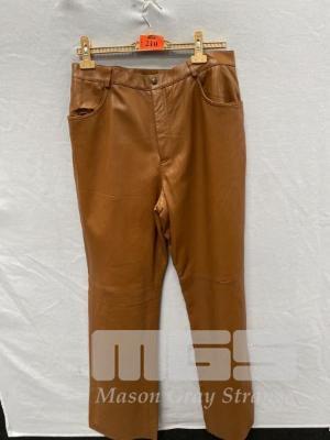 WOMENS LEATHER PANTS, CARAMEL, SIZE: 18
