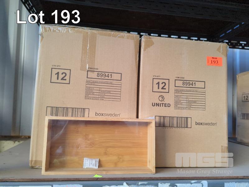 2 X CARTONS OF 12 SWEDISH STYLE BAMBOO ORGANISATION TRAYS (30 X 15 X 7 CM W D H - 24 TRAYS IN TOTO)