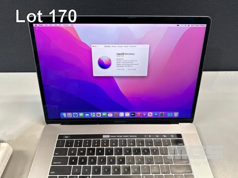 LAPTOP, APPLE MACBOOK PRO (A1990), CORE i9 9880H (9TH GEN) @ 2.3GHz, 16GB DDR4 RAM, 1TB SSD, 15.4" RETINA DISPLAY (2880x1800), INTEL UHD GRAPHICS 630, THUNDERBOLT 3, TOUCHBAR, Wi-Fi, BLUETOOTH, MAC OS 12 INSTALLED & USB-C POWER SUPPLY (NOTE: MINOR MARKS ON SCREEN) S/N:C02Z10BELVDR