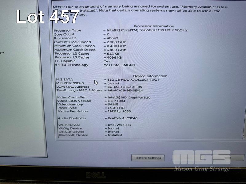 LAPTOP, DELL LATITUDE 7480, CORE i7 6600U (6TH GEN) @ 2.6GHz, 16GB DDR4 RAM, 512GB M.2 SSD, 14" WIDESCREEN (1920x1080), INTEL HD GRAPHICS 520, Wi-Fi, BLUETOOTH, WINDOWS 10 HOME INSTALLED & POWER SUPPLY S/N:DTJBHM2