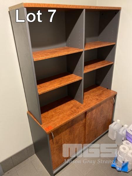 CREDENZA & BOOKSHELF, 1200 x 450mm & 3 DOOR WALL MOUNT CUPBOARD, 1400 x 350mm
