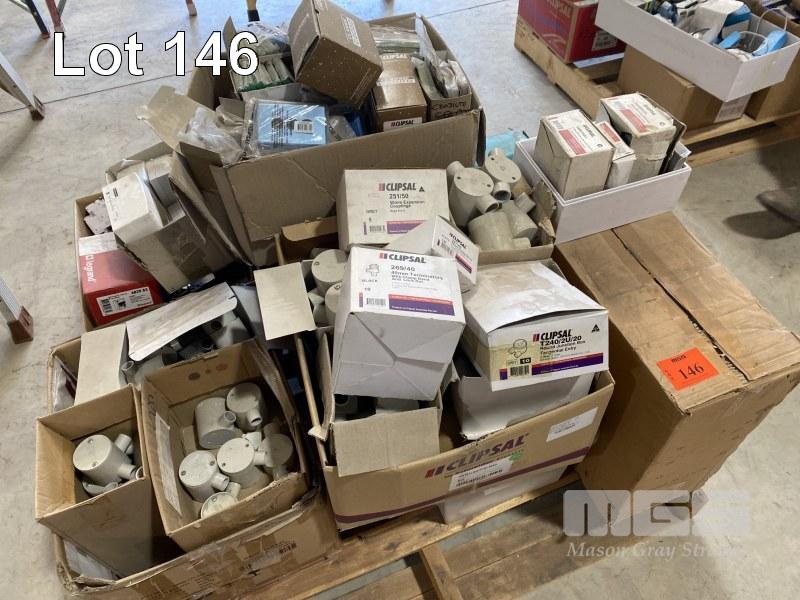 ELECTRICAL COMPONENTS INCLUDING CONDUIT FITTING, WALL PLATES, CB BOXES, CB'S. PLUG BASES & PLUGS, METAL ENCLOSURE