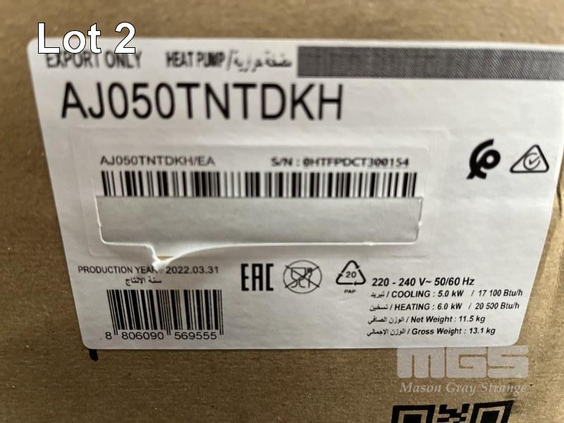 NEW SAMSUNG SPLIT SYSTEM AIRCONDTIONER WITH 2 x HEAD UNITS OUTDOOR UNIT MODEL: AJ100TXJ5KH, COOLING: 10kw, HEATING: 12kw INDOOR HEAD UNIT MODEL: AJ050TNTDKH, COOLING: 5kw, HEATING 6kw INDOOR HEAD UNIT MODEL: AJ025TNTDKH, COOLING: 2.5kw, HEATING: 3.2kw ALL NEW IN BOX! DOM: 2022 WITH SUPERSLAB INSTALLATION KIT