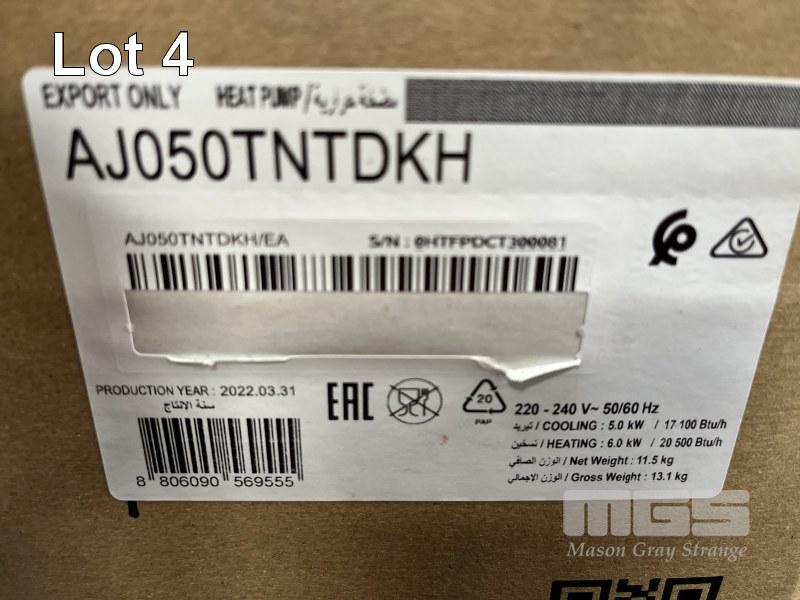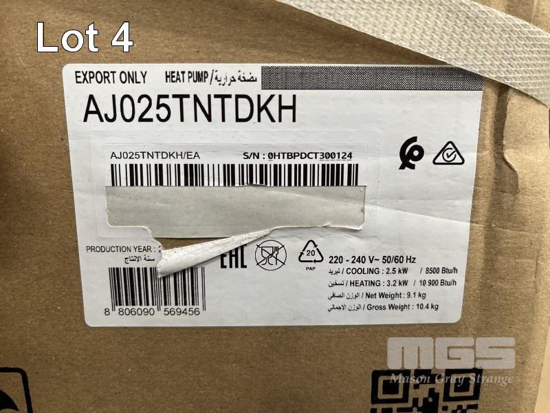 NEW SAMSUNG SPLIT SYSTEM AIRCONDTIONER WITH 2 x HEAD UNITS OUTDOOR UNIT MODEL: AJ100TXJ5KH, COOLING: 10kw, HEATING: 12kw INDOOR HEAD UNIT MODEL: AJ050TNTDKH, COOLING: 5kw, HEATING 6kw INDOOR HEAD UNIT MODEL: AJ025TNTDKH, COOLING: 2.5kw, HEATING: 3.2kw ALL NEW IN BOX! DOM: 2022 WITH SUPERSLAB INSTALLATION KIT