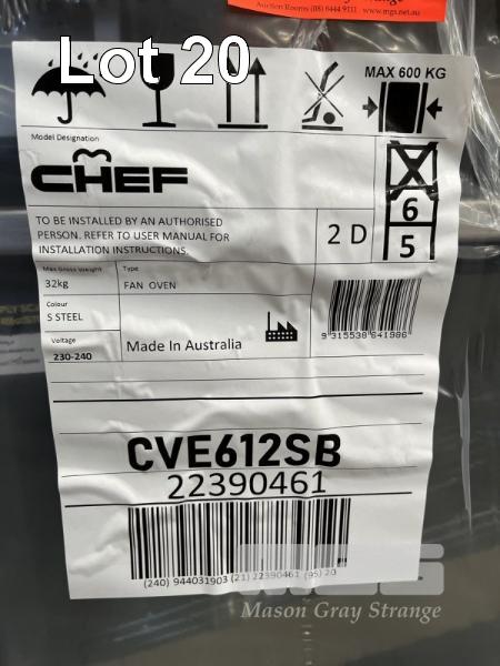 NEW CHEF ELECTRIC FAN FORCED OVEN CHEF OVEN, MODEL: CVE612SB, 596 (D) x 573 (W) x 597mm (H), MULTI-FUNCTION 3, STAINLESS STEEL, FAN FORCED OVEN WITH 10A 240v PLUG & PLAY, DIAL CONTROLS, 80L CAP, RRP: $749, NEW IN BOX!