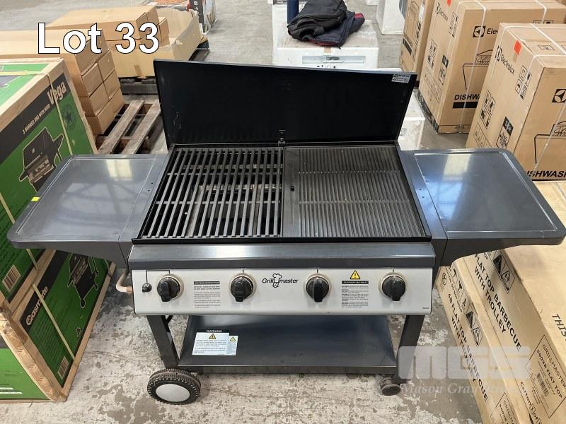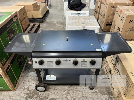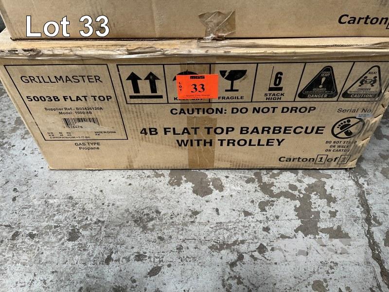 GRILLMASTER 4 BURNER FLAT TOP BBQ, ON MOBILE TROLLEY MODEL: 1000-4B NEW IN BOX (1 BOX)
