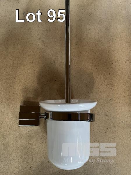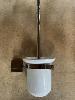 10 x WALL MOUNT TOILET BRUSH HOLDERS & BRUSHES, CERAMIC & CHROME, WITH FITTINGS, NEW IN BOXES!