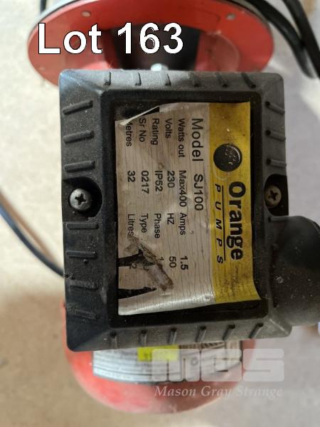 ORANGE PUMPS 240v PUMP, MODEL: SJ100, WITH ORANGE PUMPS ELECTRONIC SWITCH, MODEL: PMA22