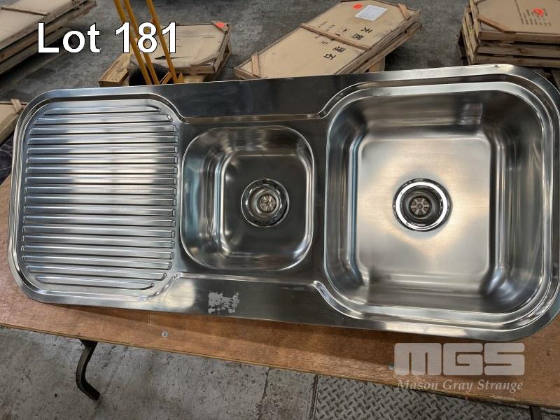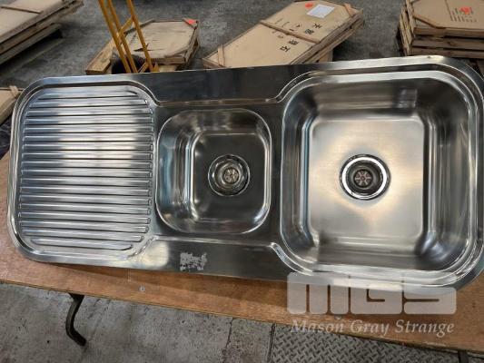 2 x TWIN BOWL STAINLESS STEEL SINK, 1200 x 500mm, NEW IN PACKAGING WITH FITTINGS