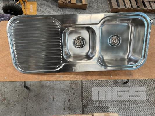 2 x TWIN BOWL STAINLESS STEEL SINK, 1200 x 500mm, NEW IN PACKAGING WITH FITTINGS