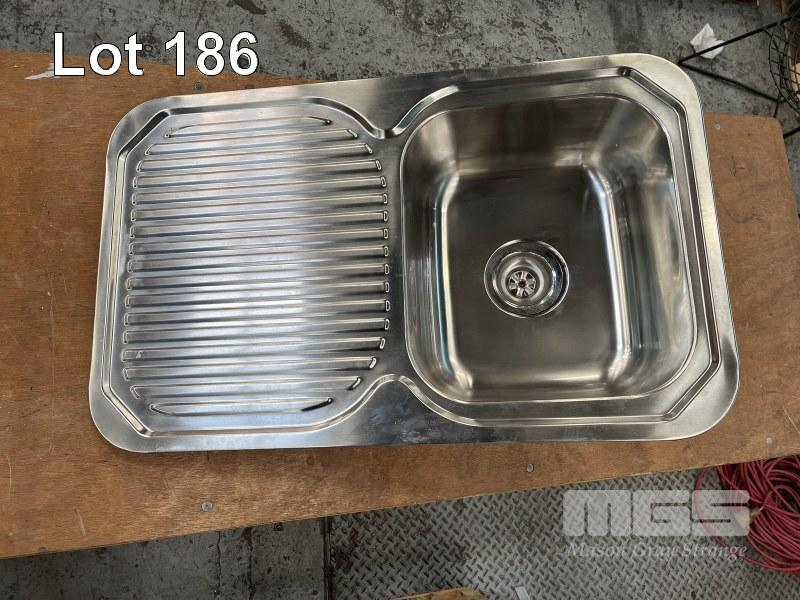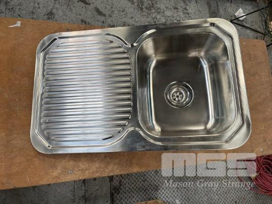 2 x SINGLE BOWL STAINLESS STEEL SINK, 775 x 480mm NEW IN PACKAGING WITH FITTINGS