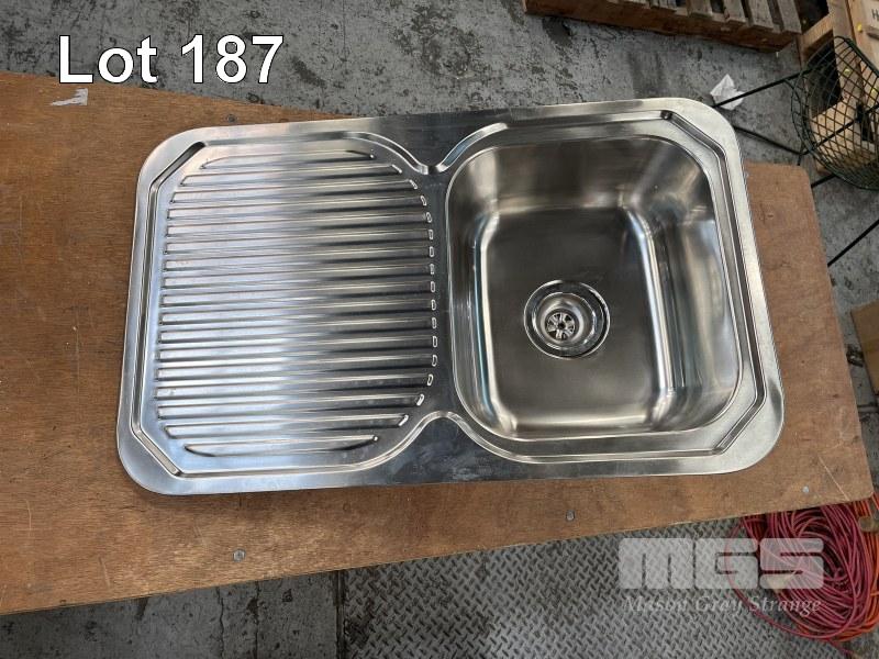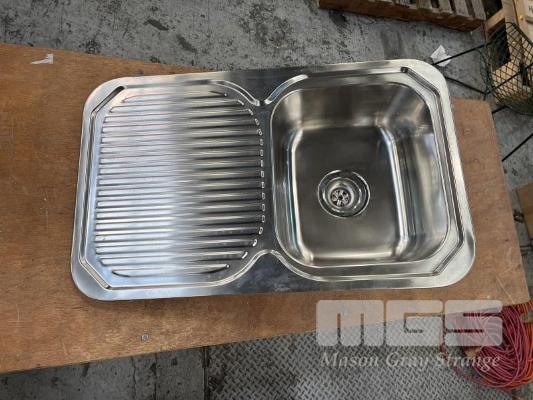 2 x SINGLE BOWL STAINLESS STEEL SINK, 775 x 480mm NEW IN PACKAGING WITH FITTINGS