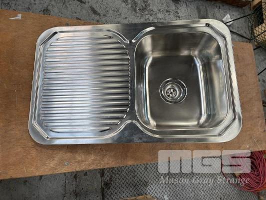 2 x SINGLE BOWL STAINLESS STEEL SINK, 775 x 480mm NEW IN PACKAGING WITH FITTINGS