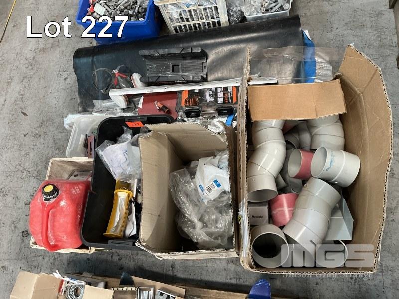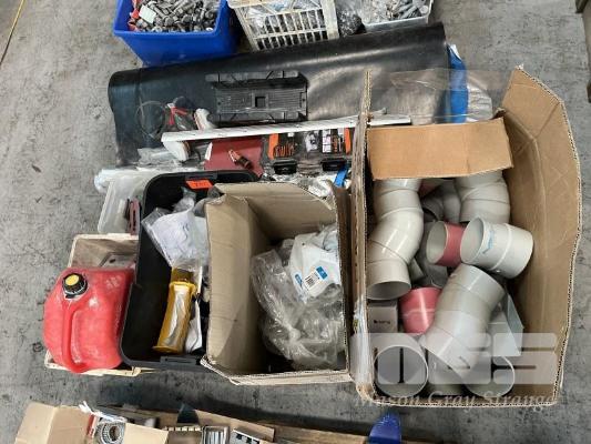 PALLET LOT BUILDERS & PLUMBING HARDWARE, BLACK PLASTIC ROLL, INSULATION MATERIAL, TILE SPACES, PVC PIPE ELBOWS & CONNECTORS, BASIN MICRO TRAPS ETC.
