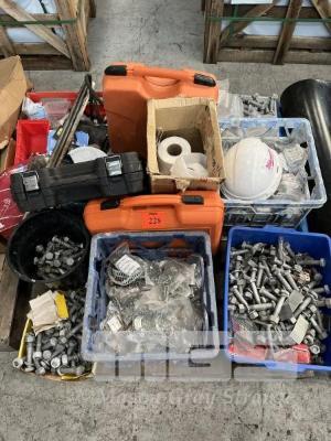 PALLET LOT BUILDERS HARDWARE, STEEL PINS, GALV STRUCTURAL BOLTS, GALV NAILS, HARD HATS, TOOL BELTS, POWER TOOL CASES, POP RIVETS ETC.