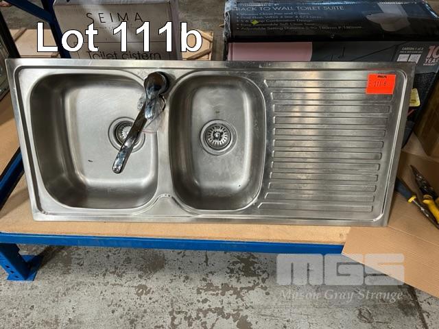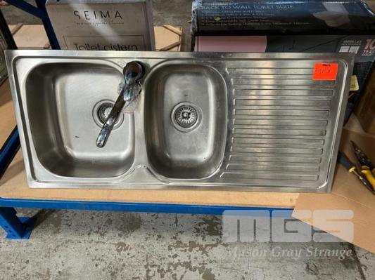 STAINLESS STEEL DOUBLE BOWL SINK 1080 x 480mm WITH MIXER TAP, FLEXI HOSE & PVC PLUMBING, READY TO INSTALL!