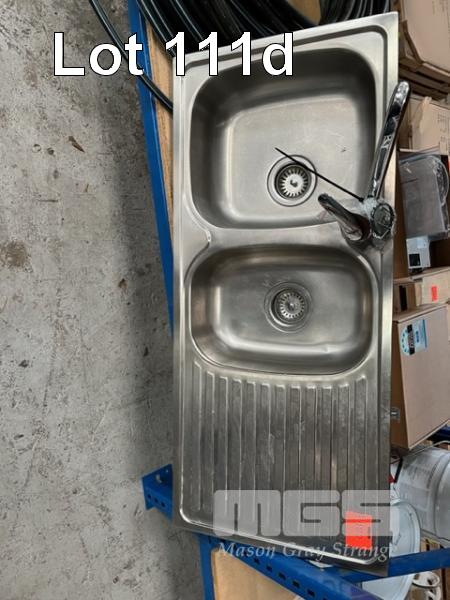 STAINLESS STEEL DOUBLE BOWL SINK 1080 x 480mm WITH MIXER TAP, FLEXI HOSE & PVC PLUMBING, READY TO INSTALL!