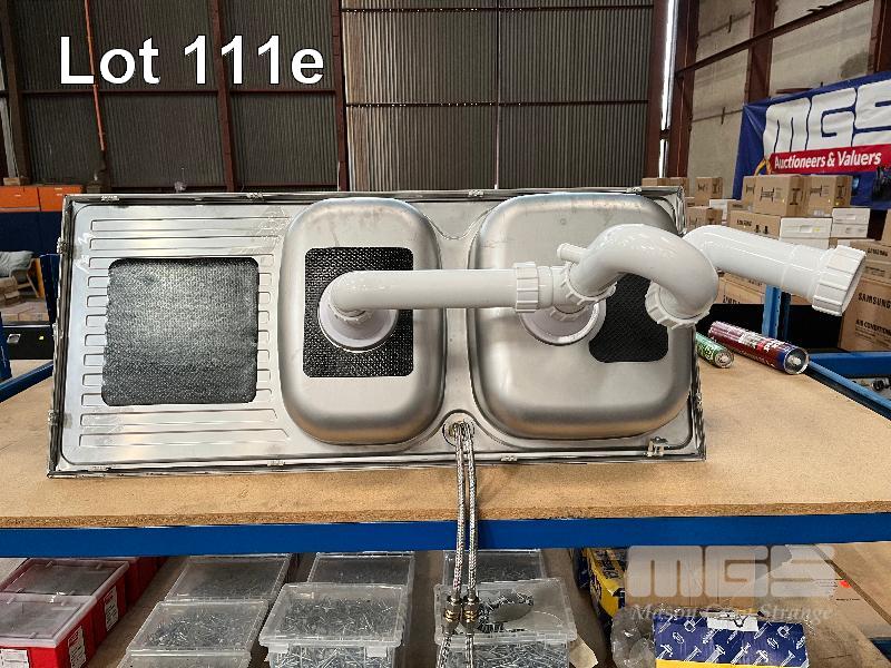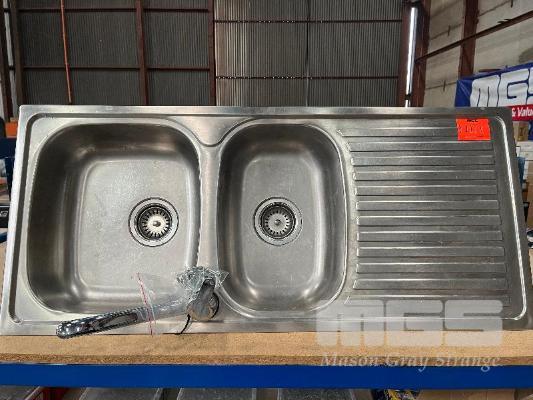 STAINLESS STEEL DOUBLE BOWL SINK 1080 x 480mm WITH MIXER TAP, FLEXI HOSE & PVC PLUMBING, READY TO INSTALL!