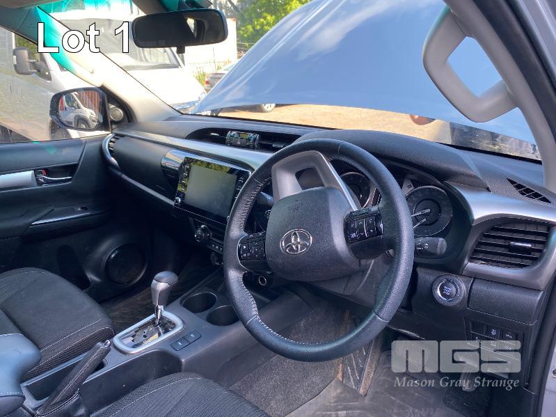 2021 TOYOTA HILUX SR5, GUN126R-DTTHXQ, DUAL CAB UTILITY 4x4 REG: S506 CSM (SA) VIN: MR0BA3CD200069697 ENG: 1GD5280587 ODO: 31,246kms SHOWING 2.8 LITRE TURBO DIESEL, AUTOMATIC TRANSMISSION, SILVER DUCO, 4 DOORS, 5 SEAT, 4x4 ABS, AIR BAG, AIR CON, ALLOY WHEELS, BLUETOOTH, CENTRAL LOCKING, CRUISE CONTROL, IMMOBILISER, POWER STEERING, POWER WINDOWS, SIDE STEP, SPARE WHEEL, TONNEAU COVER, TOW BAR, TRACTION CONTROL, ALLOY ROLL BAR KEY #11 (WITH 2 KEY/S, WITH OWNER'S MANUAL, WITH SERVICE BOOKS) CONDITION: REAR/L/H/S PANEL & BUMPER - DENTS & SCRATCHES FRONT/L/H/S GUARD - DENTS & SCRATCHES