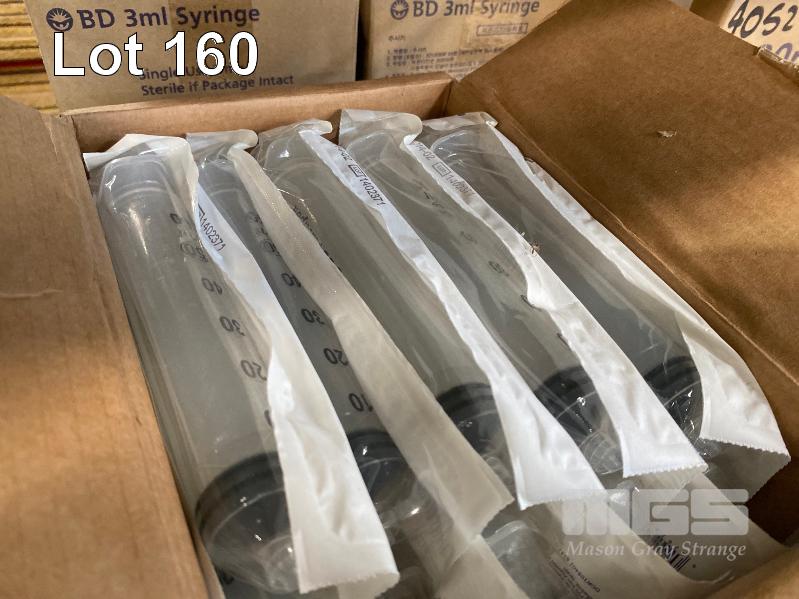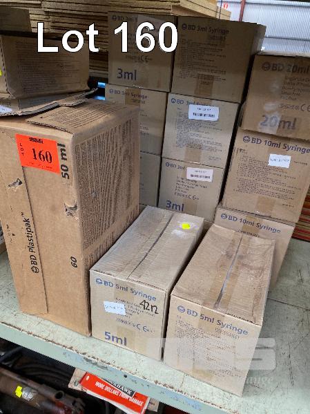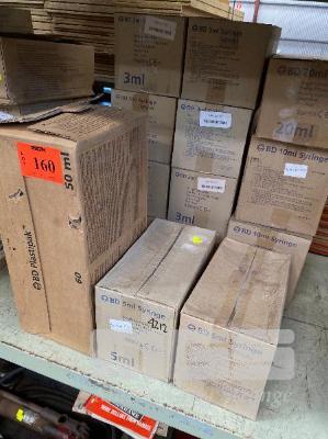 PLASTIC SYRINGES INC 3, 5, 10, 20 & 50mm, 14 x BOXES & 1 x BOX MEDICAL FACE SHIELDS, 200 PIECES AS NEW