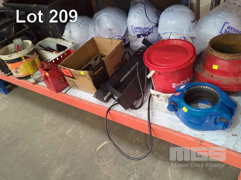 ELEC LOCK OUT BOX & PADLOCKS, POWER BOXES, CLAMPS, ANDERSON PLUGS, TUB OF GREASE, ONE WAY VALVE, 150mm DIAMETER 1 x BENCH