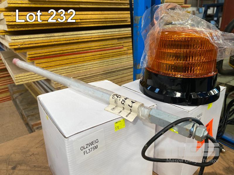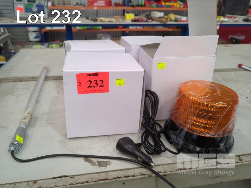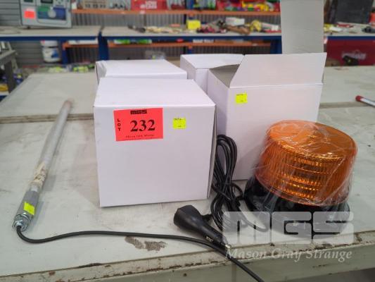 4 x LED ROTARY WARNING/HAZARD LIGHTS, 12V OLZWEIG, FL375M, MAGNETIC, ROOF MOUNT & 2 X LED POLE STROBE LIGHT, RED & AMBER, 600mm, ATLAS, 12V