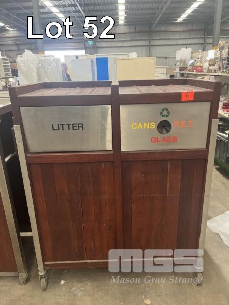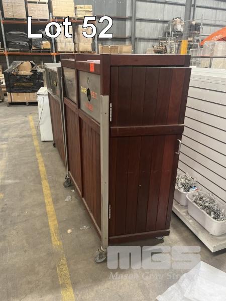 OUTDOOR MOBILE BIN, TIMBER/ STAINLESS STEEL CONSTRUCTION 1230 x 610 x 1490mm