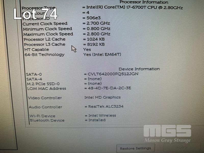 DESKTOP PC, DELL OPTIPLEX 7040 MICRO, CORE i7 6700T (6TH GEN) @ 2.8GHz, 16GB DDR4 RAM, 512GB SSD, INTEL HD VIDEO, 6 x USB, Wi-Fi, BLUETOOTH, WINDOWS 10 HOME INSTALLED & POWER SUPPLY (65W) (NO KEYBOARD, NO MOUSE) S/N:4DQ41H2