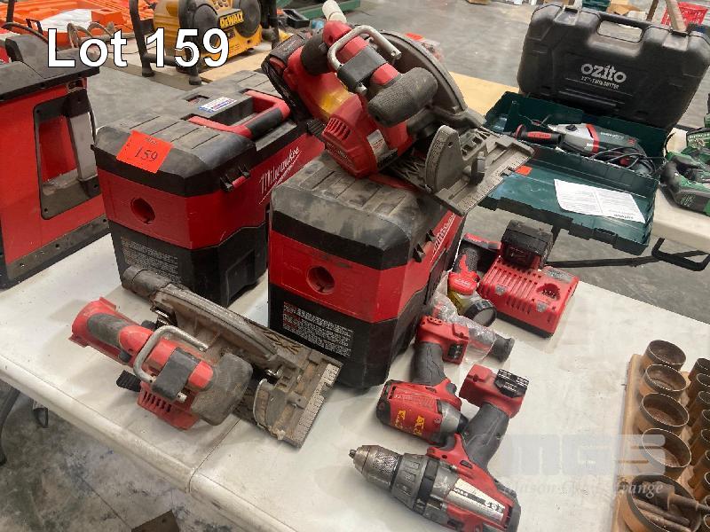 MILWAUKEE CORDLESS SETS INCLUDING 2 x SAWS, 2 x VACS, TEK GUN & CHARGER