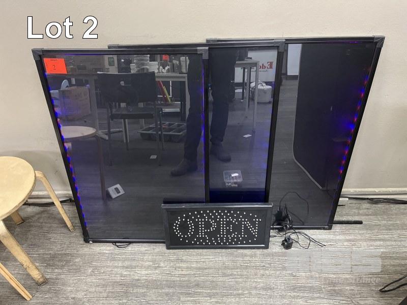 3 x PELICAN ARTLINE LED LIGHTING BOARDS, 600 x 900mm, PLUS OPEN SIGN, 240v