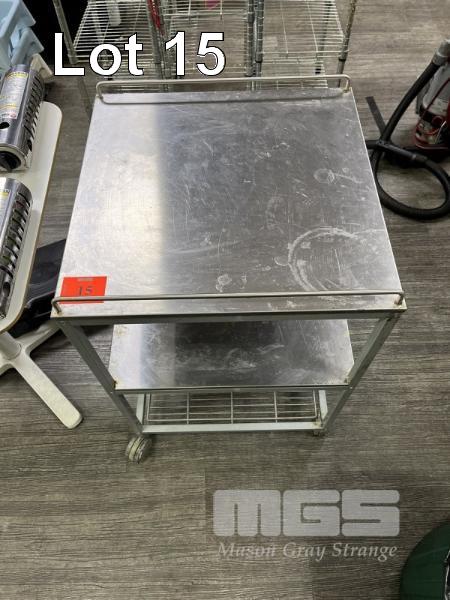 3 TIER MOBILE TROLLEY, STEEL FRAME, STAINLESS STEEL SHELVES