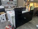 2 x SAM4S CASH REGISTERS, MODEL: ER-180T & MOBILE TIMBER LAMINATE COUNTER, 1400 x 600 x 600mm (H), LOCKABLE WHEELS