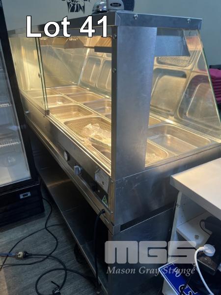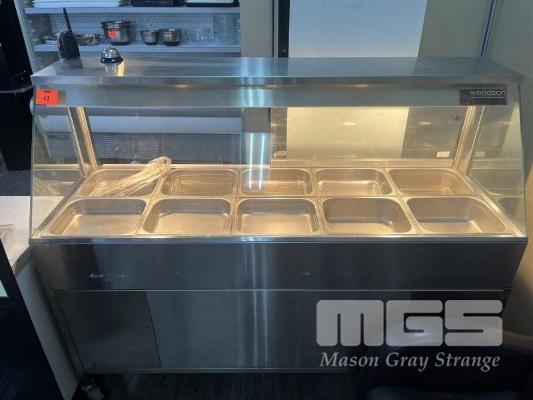 WOODSON MOBILE BAIN MARIE, GLASS FRONT WITH GLASS SLIDING DOORS, 3 x HEAT LAMPS, MODEL: W.HFS25, DOM: 2014, 1670 x 600mm, 240v 15A PLUG PLUS 15A EXTENSION CORD