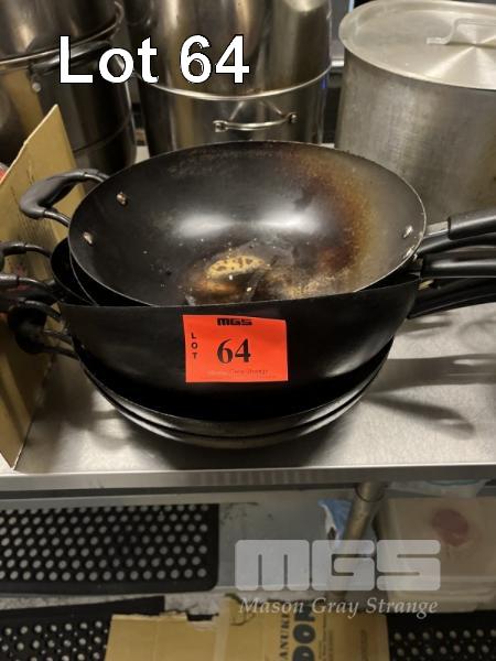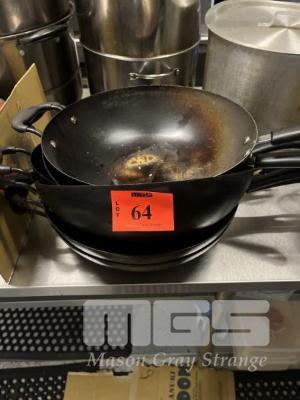 3 x STAINLESS STEEL POTS, 6 x WOKS, 6 x SERVING PANS