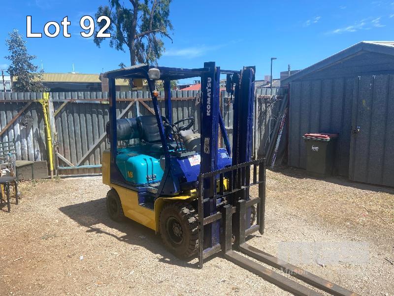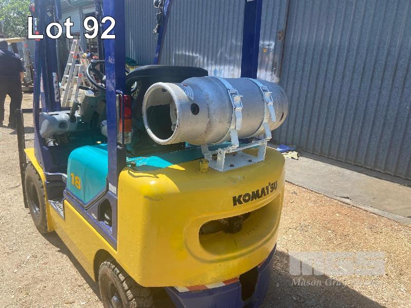 FORKLIFT, KOMATSU 18 MOD: FG18T-16 S/NO: 61660 2 STAGE CONTAINER ENTRY MAST PETROL OPTIONAL LPG., PNEUMATIC TYRES 3m LIFT 5522 HRS 1,570kg CAPACITY