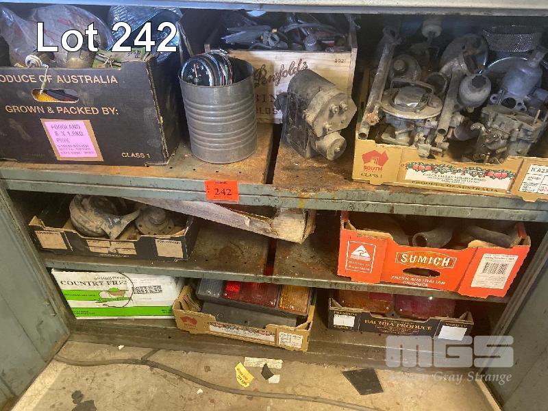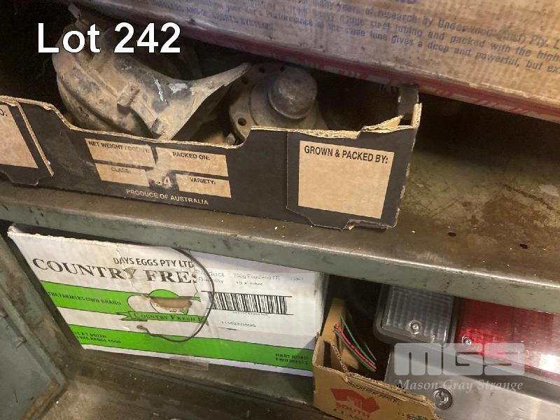 ASSORTED CAR PARTS, CARBY'S, LIGHTS, GAUGES, MAGENTO, HORNS