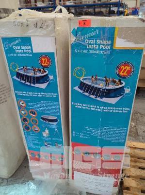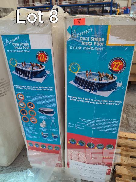 CLARK RUBBER EXTERNAL FRAME 6.7 M PORTABLE SWIMMING POOL DIMENSIONS 6.5 X 4.0 X 1.2 M (W D H), 19,450 L CAPACITY. INCLUDES FILTER PUMP, POOL COVER, GROUND SHEET, STEP LADDER, CLEANING EXTENSION POLE WITH VACUUM & SKIMMER HEADS. NEW IN BOX (2 X BOXES)