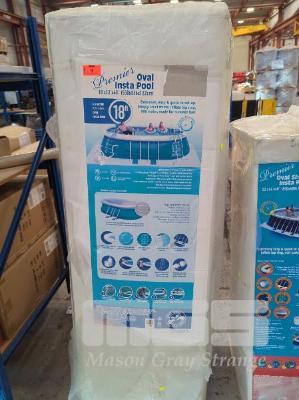 EXTERNAL FRAME 5.5 M PORTABLE SWIMMING POOL DIMENSIONS 5.5 X 3.66 X 1.22 M (W D H), 14,080 L CAPACITY. INCLUDES FILTER PUMP, POOL COVER, GROUND SHEET, STEP LADDER, CLEANING EXTENSION POLE WITH VACUUM & SKIMMER HEADS. NEW IN BOX (2 X BOXES)