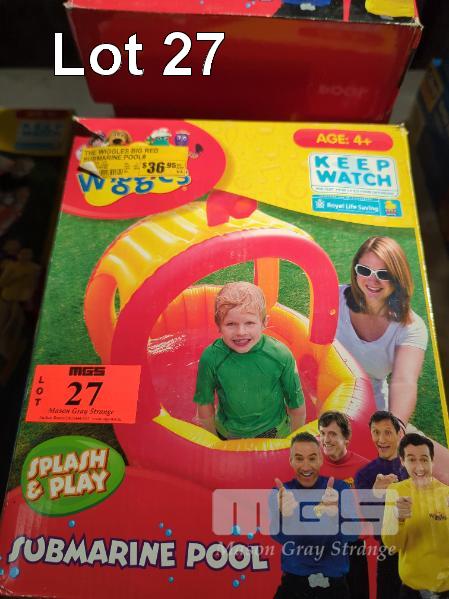 7 X WIGGLES BIG RED SUBMARINE SHADED INFLATABLE KIDS SPLASH POOLS. (NEW).
