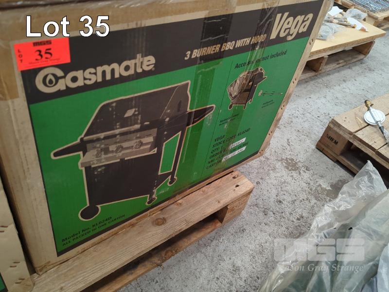 GASMATE VEGA MOBILE 3-BURNER COVERED GAS BBQ ON 2-DOOR CABINET TROLLEY