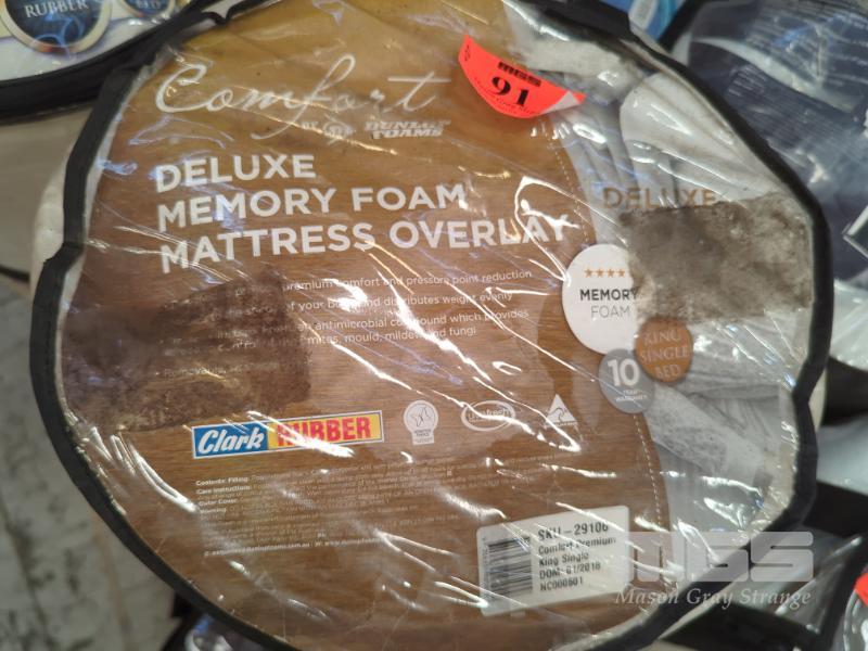 1 X KING SINGLE BED COMFORT DELUXE MEMORY FOAM MATTRESS OVERLAY (NEW).