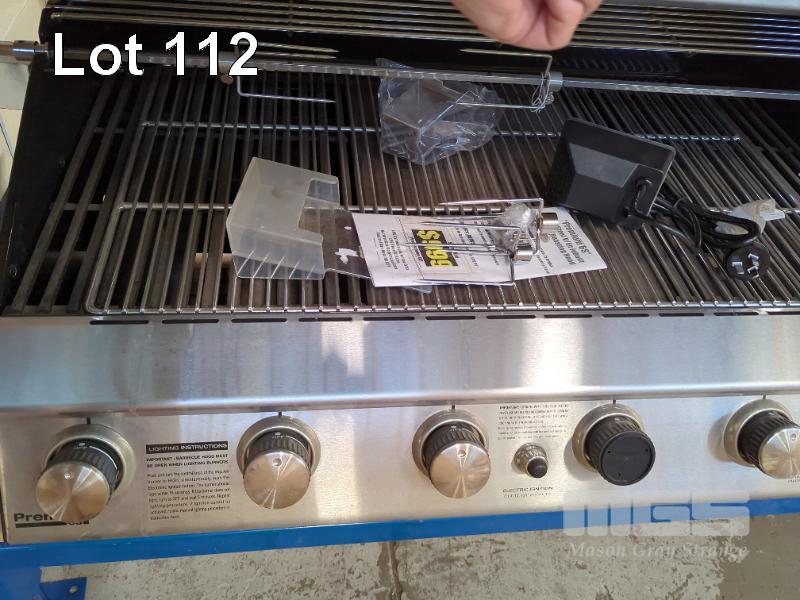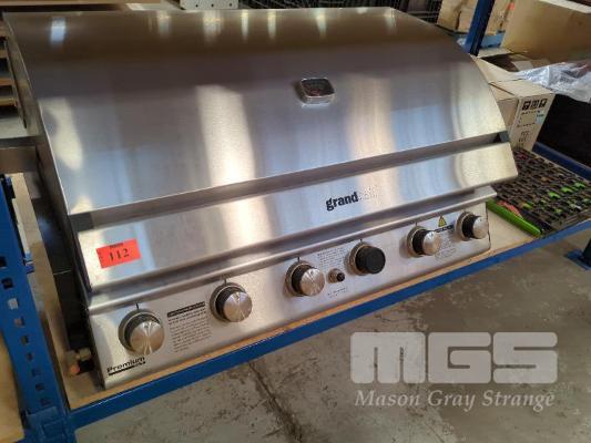 GRANDHALL PREMIUM 6S BUILT-IN STAINLESS STEEL COVERED GAS BBQ WITH ROTISSERIE KIT. FEATURES STAINLESS STEEL HOOD WITH 6-BURNERS AND ELECTRONIC IGNITION. ** EX DISPLAY UNIT - ASSEMBLED ** ORP $999