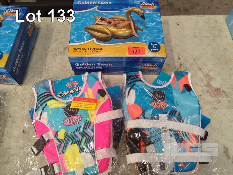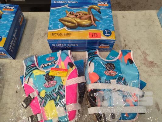 LARGE GOLDEN SWAN INFLATABLE RIDE-ON WATER PLAY TOY.