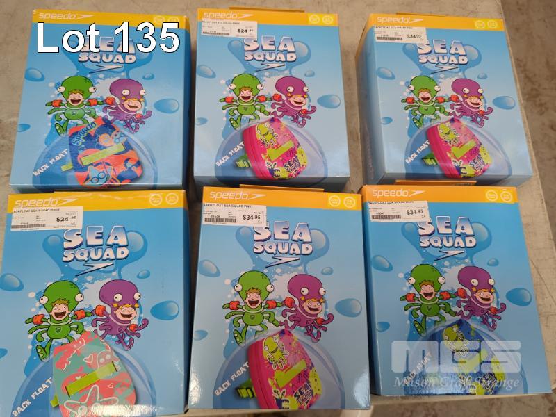 6 X SPEEDO "SEA SQUAD" CHILD'S BACK FLOAT (15-25 KG / 2 - 6 YRS). ALL NEW.